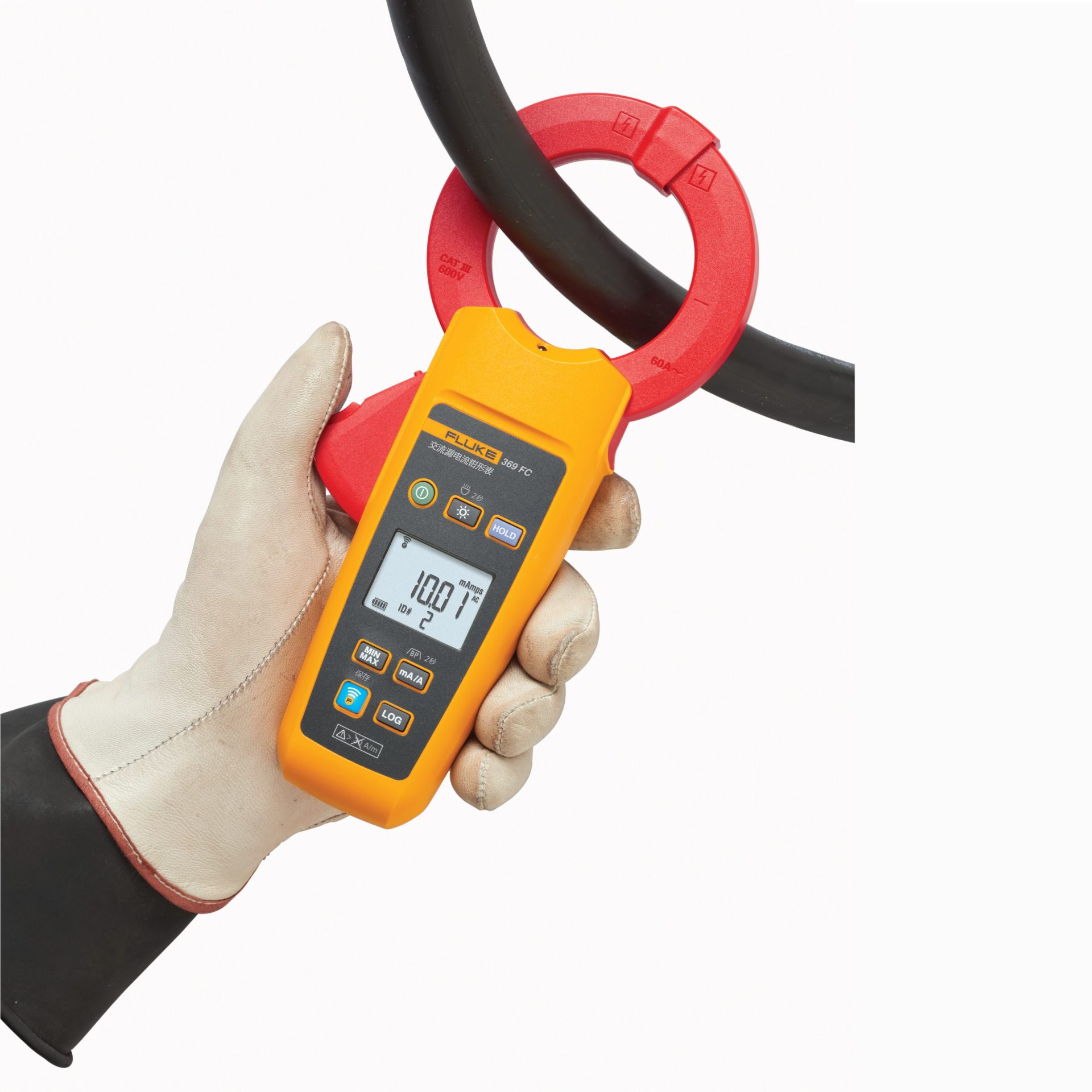 Fluke 369 FC detects leakage currents ⚡ with 61 mm jaw, 1 μA resolution, and wireless data logging — no equipment shutdown required.
